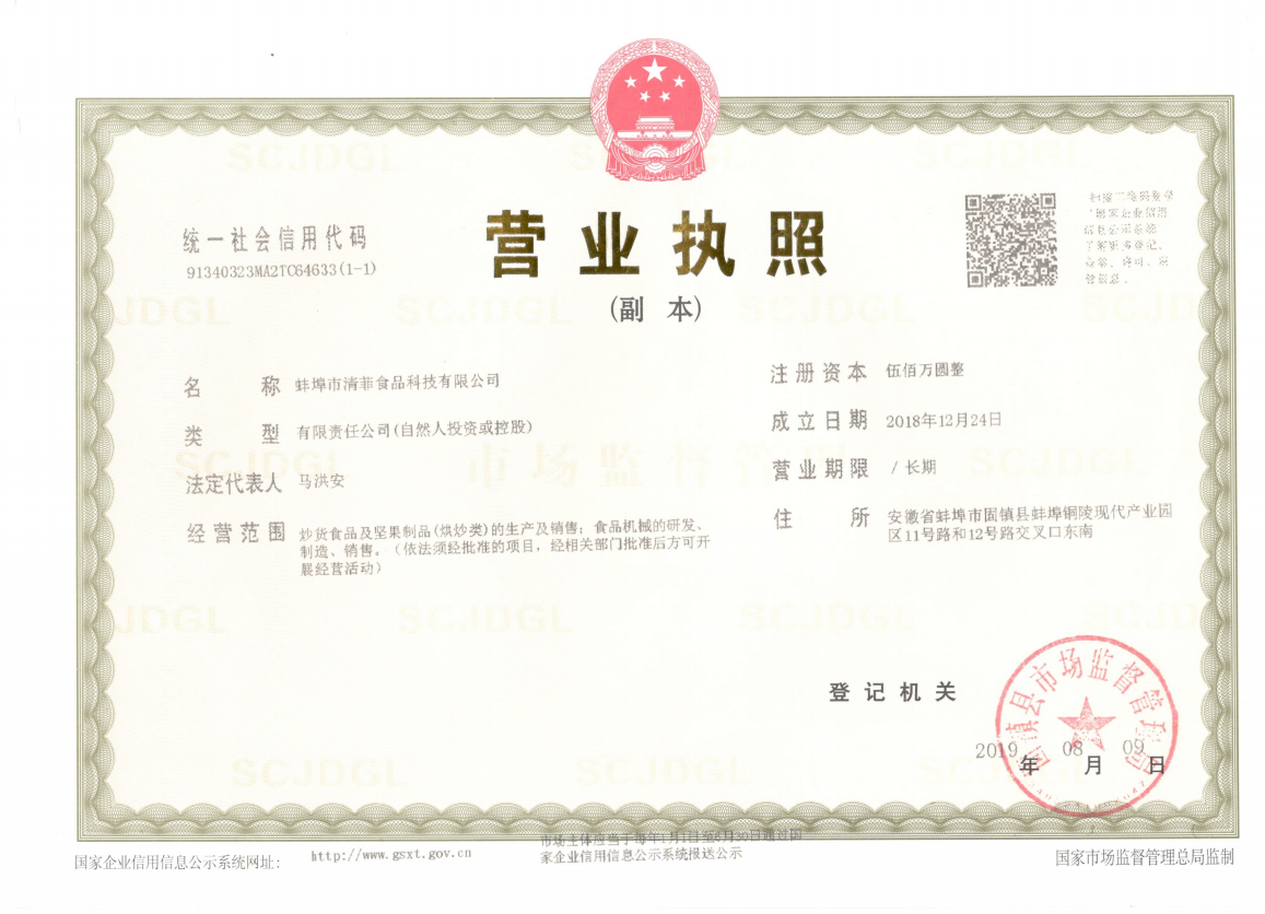 蚌埠市清菲食品科技有限公司前身為蚌埠市正味食品有限公司。公司自成立以來(lái)專門從事堅(jiān)果炒貨食品的生產(chǎn)和銷售,產(chǎn)品種類齊全、品質(zhì)優(yōu)良。主要產(chǎn)品有葵花籽:脫皮瓜子、焦糖瓜子、核桃瓜子;西瓜子:話梅西瓜子、甘草西瓜子;五香南瓜子及花生。公司坐落在蚌埠市固鎮(zhèn)縣蚌埠銅陵現(xiàn)代產(chǎn)業(yè)園區(qū)內(nèi),總占地30余畝,交通便捷,環(huán)境優(yōu)美,獨(dú)立的生產(chǎn)區(qū)、辦公區(qū)、生活區(qū)。本公司下設(shè)綜合部、財(cái)務(wù)部、研發(fā)部、生產(chǎn)部、質(zhì)檢部、銷售部等。公司嚴(yán)格按照中華人民共和國(guó)《食品安全法》,全面執(zhí)行食品安全國(guó)家標(biāo)準(zhǔn)及食品生產(chǎn)許可管理辦法等規(guī)定。為確保食品安全,本公司在本地業(yè)內(nèi)率先建立起了以ISO9001和HACCP質(zhì)量保證體系為基礎(chǔ)的質(zhì)量管理體系和食品安全管理體系。根據(jù)行業(yè)特點(diǎn),公司制定和實(shí)施了嚴(yán)格的質(zhì)量控制措施,并形成了從供方管理、入廠檢測(cè)、在線檢測(cè)、成品出廠檢測(cè),到市場(chǎng)售中檢測(cè)的全流程質(zhì)量監(jiān)控體系,切實(shí)將嚴(yán)格的質(zhì)量管理落實(shí)到原料采購(gòu)、產(chǎn)品設(shè)計(jì)、生產(chǎn)加工、產(chǎn)品銷售、售后服務(wù)等各個(gè)環(huán)節(jié)。堅(jiān)持以質(zhì)量為保障,以市場(chǎng)為導(dǎo)向,以效益為目的,滿足顧客要求,企業(yè)持續(xù)發(fā)展。以嚴(yán)格的管理、安全的產(chǎn)品、優(yōu)良的服務(wù)確保產(chǎn)品合格率百分之百,顧客滿意率百分之九十八的承諾。本公司在長(zhǎng)期的發(fā)展過(guò)程中,除了注重產(chǎn)品的研發(fā)與市場(chǎng)拓展,一直十分重視自身無(wú)形資產(chǎn)的保護(hù)與積累,公司成立初期,就已注冊(cè)“閑來(lái)客”商標(biāo),并設(shè)計(jì)生動(dòng)形象的logo。